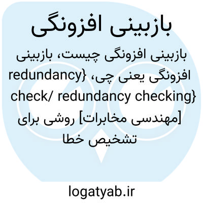 {redundancy check/ redundancy checking} [مهندسی مخابرات] روشی برای تشخیص خطا که در آن داده هایی را به دادۀ اصلی اضافه می کنند به طوری که پایانۀ گیرنده بتواند با مقایسۀ دو مجموعۀ داده وقوع خطا در انتقال را با درجۀ احتمال بالا تشخیص دهد