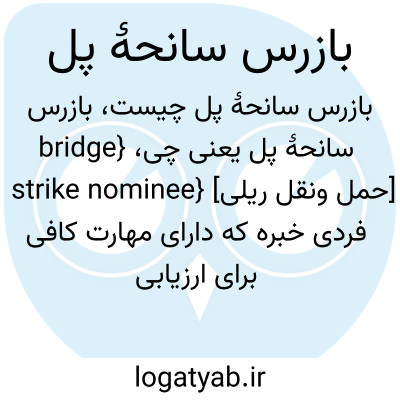 {bridge strike nominee} [حمل ونقل ریلی] فردی خبره که دارای مهارت کافی برای ارزیابی کارشناسانه و تأیید سلامت خط آهن روی پل ضربه دیده و بازگشایی مسیر است
