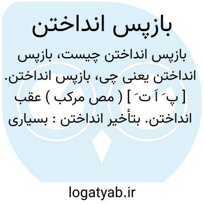 بازپس انداختن. [ پ َ اَ ت َ ] ( مص مرکب ) عقب انداختن. بتأخیر انداختن: بسیاری برف کشت را قطع میگرداند و زراعت را بازپس می اندازد. ( تاریخ قم ص 190 ). پس چون معتمد این سخن شنید، خواست که رسم استفتاح و ابتدای خراج باز پس اندازد. ( تاریخ قم ص 146 ).