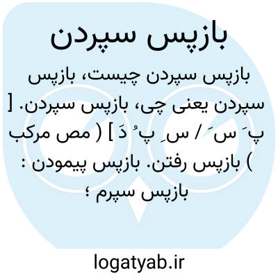 بازپس سپردن. [ پ َ س َ / س ِ پ ُ دَ ] ( مص مرکب ) بازپس رفتن. بازپس پیمودن: بازپس سپرم؛ ای باز پس روم و رجوع کنم. ( آنندراج ). و رجوع به بازپس رفتن شود.