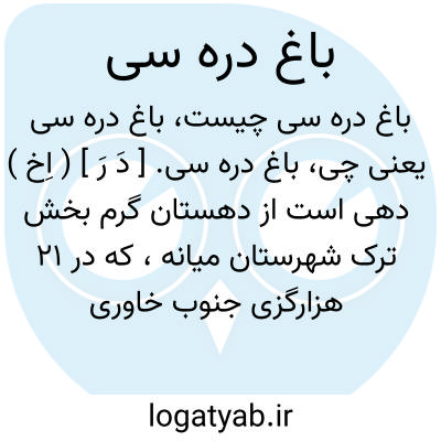 باغ دره سی. [ دَ رَ ] ( اِخ ) دهی است از دهستان گرم بخش ترک شهرستان میانه، که در 21 هزارگزی جنوب خاوری بخش و 4 هزارگزی شوسه خلخال به میانه واقع است. ناحیه ای است کوهستانی و دارای آب و هوای معتدل و 40 تن سکنه، آب آن از چشمه تأمین میشود. محصول عمده آن غلات و نخود سیاه و عدس و شغل مردمش زراعت و گله داری وراهش مالرو است. ( از فرهنگ جغرافیایی ایران ج 4 ).