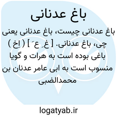 باغ عدنانی. [ غ ِ ع َ ] ( اِخ ) باغی بوده است به هرات و گویا منسوب است به ابی عامر عدنان بن محمدالضبی که در اواخر عهد سامانیان رئیس هرات بوده است. ( از حاشیه تاریخ بیهقی چ فیاض ص 49 ): امیر [ مسعود پس از حرکت از نیشابور ] بهرات آمد، دو روز مانده از این ماه و در کوشک مبارک فرود آمد و آنجا عیدی کرد که اقرار دارند که چنان عید هیچ ملک نکرده است، خوانی نهاده بودند سلطان را [ سلطان مسعودرا ] در آن بنای نو که در باغ عدنانی ساخته بودند، و خوانهای دیگر نهاده بودند در باغ عدنانی. ( تاریخ بیهقی چ فیاض ص 49 ). [ مسعود ] در کوشک باغ عدنانی فرمود تا خانه ای برآوردند خواب قیلوله را و آن را مزملها ساختند و خیشها آویختند چنانکه آب از حوض روان شدی. ( تاریخ بیهقی چ فیاض ص 121 ). سعید نفیسی در آثار واحوال رودکی ج 2 ص 505 آرد که «این کس [ عدنانی ممدوح رودکی ] مردی محتشم بود چنانکه در تاریخ بیهقی محلی را در شهر نیشابور اسم میبرند باسم باغ عدنانی که از باغهای نزه و معروف نیشابور بوده است ». ولی در مراجع موجود محلی بنام باغ عدنانی نیشابور دیده نشد.