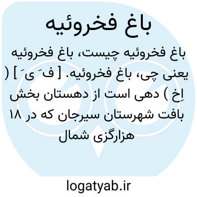 باغ فخروئیه. [ ف َ ی َ ] ( اِخ ) دهی است از دهستان بخش بافت شهرستان سیرجان که در 18 هزارگزی شمال خاوری بافت و 4 هزارگزی شمال راه مالرو کیسکان به رابر واقع است. ناحیه ای است کوهستانی و سردسیر و دارای 257 تن سکنه و آب آنجا از قنات و چشمه تأمین میشود. محصول عمده آن غلات و حبوبات و شغل مردمش زراعت و راهش مالرو است. مزرعه تلخ چارجزء این ده است. ( از فرهنگ جغرافیایی ایران ج 8 ).