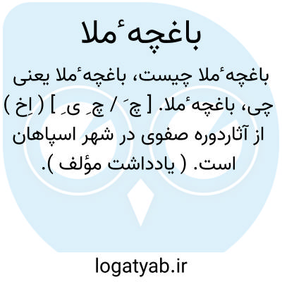 باغچه ٔملا. [ چ َ / چ ِ ی ِ ] ( اِخ ) از آثاردوره صفوی در شهر اسپاهان است. ( یادداشت مؤلف ).