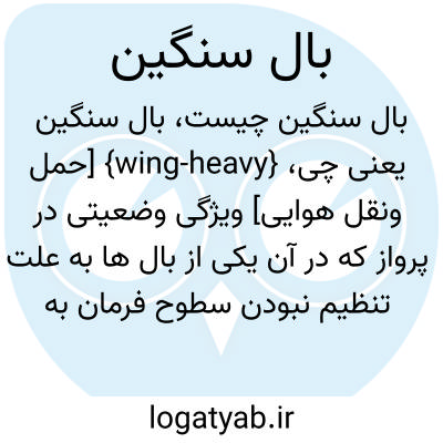 {wing-heavy} [حمل ونقل هوایی] ویژگی وضعیتی در پرواز که در آن یکی از بال ها به علت تنظیم نبودن سطوح فرمان به سمت پایین متمایل می شود