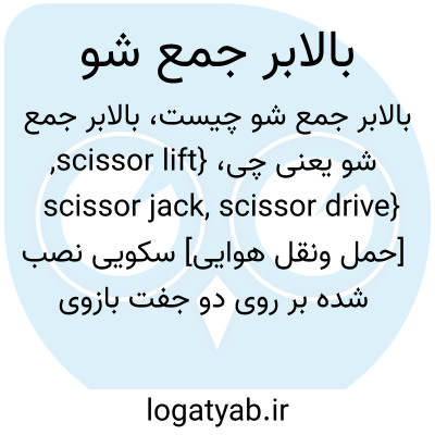 {scissor lift, scissor jack, scissor drive} [حمل ونقل هوایی] سکویی نصب شده بر روی دو جفت بازوی به هم محورشده که جابه جایی عمودی را ممکن می کند