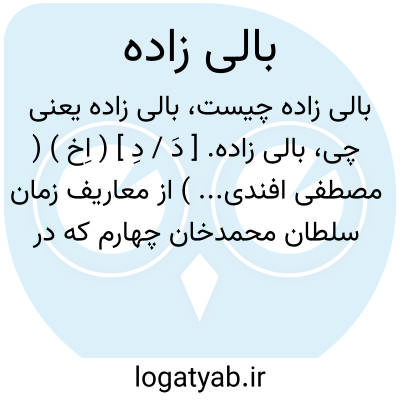 بالی زاده. [ دَ / دِ ] ( اِخ ) ( مصطفی افندی... ) از معاریف زمان سلطان محمدخان چهارم که در سال 1058 هَ. ق. به سمت قاضی عسکرسلطان و سپس در 1067 به مقام مشیخت ترفیع یافت. احادیث بسیار از ابوایوب انصاری نقل کرده است. او راست: شرح فصوص الحکم لابن العربی. و رجوع به قاموس الاعلام ترکی ج 2 ص 1219 و معجم المطبوعات شود.