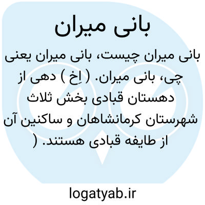 بانی میران. ( اِخ ) دهی از دهستان قبادی بخش ثلاث شهرستان کرمانشاهان و ساکنین آن از طایفه قبادی هستند. ( از فرهنگ جغرافیائی ایران ج 5 ).