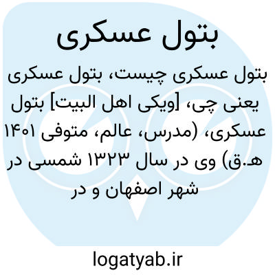 [ویکی اهل البیت] بتول عسکری، (مدرس، عالم، متوفی 1401 هـ.ق) وی در سال 1323 شمسی در شهر اصفهان و در یک خانواده متوسط و مذهبی به دنیا آمد. او از همان دوران کودکی در خانه با نماز و سایر فرایض دینی آشنا شد و تحت تعلیم و تربیت مادربزرگش قرار گرفت.