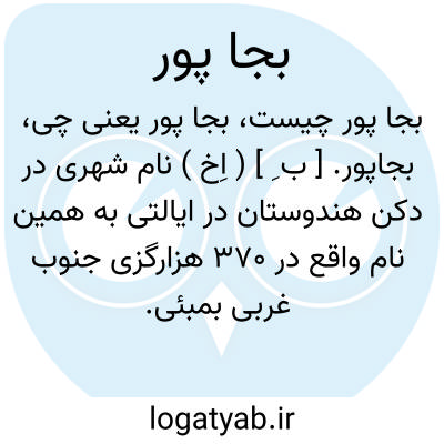 بجاپور. [ ب ِ ] ( اِخ ) نام شهری در دکن هندوستان در ایالتی به همین نام واقع در 370 هزارگزی جنوب غربی بمبئی. مسجد سلطان محمدشاه در آن شهر معروف است. ( از قاموس الاعلام ترکی ).