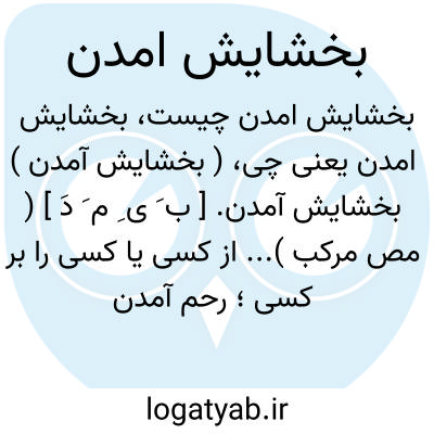 ( بخشایش آمدن ) بخشایش آمدن. [ ب َ ی ِ م َ دَ ] ( مص مرکب )... از کسی یا کسی را بر کسی؛ رحم آمدن کسی نسبت به دیگری:
