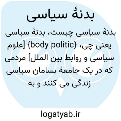 {body politic} [علوم سیاسی و روابط بین الملل] مردمی که در یک جامعۀ بسامان سیاسی زندگی می کنند و به عنوان یک موجودیت سیاسی شناخته می شوند