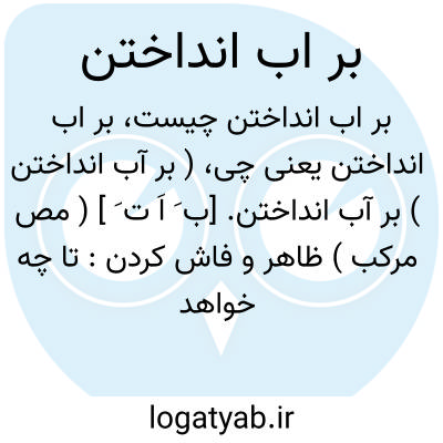 ( بر آب انداختن ) بر آب انداختن. [ب َ اَ ت َ ] ( مص مرکب ) ظاهر و فاش کردن: