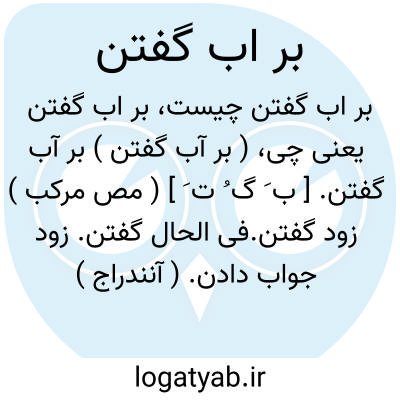 ( بر آب گفتن ) بر آب گفتن. [ ب َ گ ُ ت َ ] ( مص مرکب ) زود گفتن.فی الحال گفتن. زود جواب دادن. ( آنندراج ) ( برهان ).