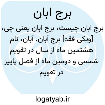 [ویکی فقه] برج آبان. آبان، نام هشتمین ماه از سال در تقویم شمسی و دومین ماه از فصل پاییز در تقویم کنونی ایرانی و نیز نام دهمین روز از ماه شمسی در تقویم ایرانیان قدیم است.