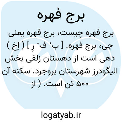 برج فهره. [ ب ُ ف َ رِ ] ( اِخ ) دهی است از دهستان زلفی بخش الیگودرز شهرستان بروجرد. سکنه آن 500 تن است. ( از فرهنگ جغرافیایی ایران ج 6 ).