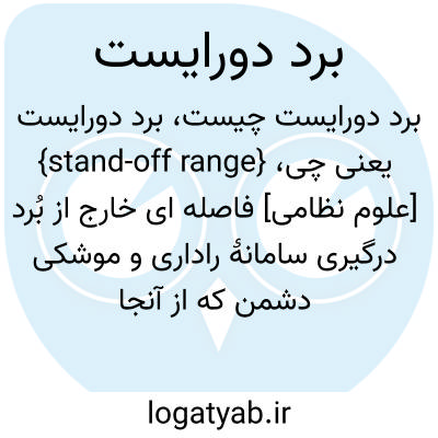 {stand-off range} [علوم نظامی] فاصله ای خارج از بُرد درگیری سامانۀ راداری و موشکی دشمن که از آنجا به اختلال یا پرتاب موشک اقدام می شود