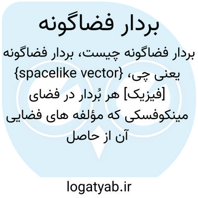{spacelike vector} [فیزیک] هر بُردار در فضای مینکوفسکی که مؤلفه های فضایی آن از حاصل ضرب مؤلفۀ زمانی و سرعت نور بیشتر باشد