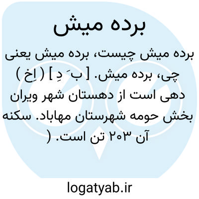 برده میش. [ ب َ دِ ] ( اِخ ) دهی است از دهستان شهر ویران بخش حومه شهرستان مهاباد. سکنه آن 203 تن است. ( از فرهنگ جغرافیایی ایران ج 4 ).