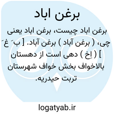 لغت نامه دهخدا ( برغن آباد ) برغن آباد. [ ب َ غ َ ] ( اِخ ) دهی است از دهستان بالاخواف بخش خواف شهرستان تربت حیدریه. سکنه آن 182 تن. ( از فرهنگجغرافیایی ایران ج 9 ).