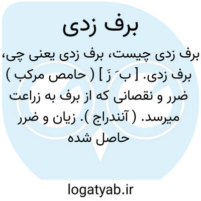 برف زدی. [ ب َ زَ ] ( حامص مرکب ) ضرر و نقصانی که از برف به زراعت میرسد. ( آنندراج ). زیان و ضرر حاصل شده از برف. ( ناظم الاطباء ).