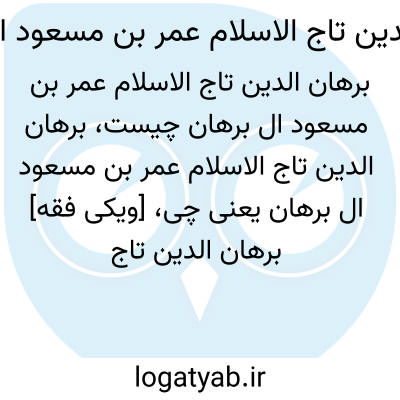 [ویکی فقه] برهان الدین تاج الاسلام عمر بن مسعود آل برهان. برهان الدین، تاج الاسلام عمر بن مسعود، از عالمان مشهور آل برهان می باشد؛ این خاندان، خاندانی روحانی و سیاسی در ماوراءالنهر و بخارا در سده ۶ و ۷ق/۱۲ و ۱۳م بوده است.