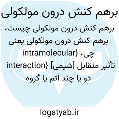 {intramolecular interaction} [شیمی] تأثیر متقابل دو یا چند اتم یا گروه اتمی درون یک مولکول