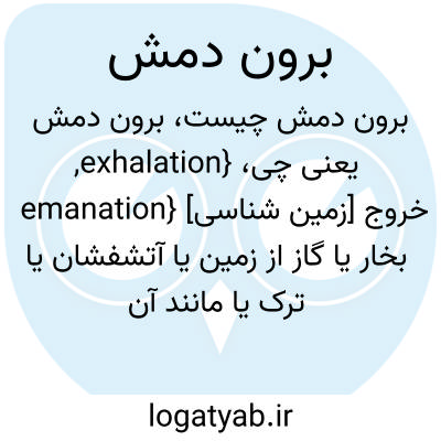 {exhalation, emanation} [زمین شناسی] خروج بخار یا گاز از زمین یا آتشفشان یا ترک یا مانند آن