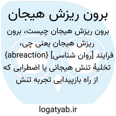 {abreaction} [روان شناسی] فرایند تخلیۀ تنش هیجانی یا اضطرابی که از راه بازپیدایی تجربه تنش زا در گفتار یا کردار یا هر دو پدید می آید متـ. برون ریزش
