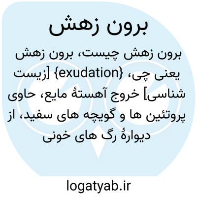 {exudation} [زیست شناسی] خروج آهستۀ مایع، حاوی پروتئین ها و گویچه های سفید، از دیوارۀ رگ های خونی سالم که معمولاً براثر التهاب رخ می دهد