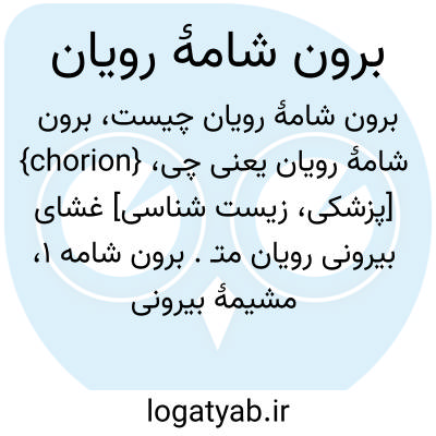 {chorion} [پزشکی، زیست شناسی] غشای بیرونی رویان متـ. برون شامه 1، مشیمۀ بیرونی