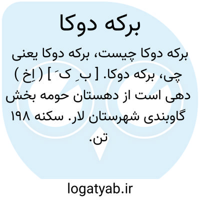 برکه دوکا. [ ب ِ ک َ ] ( اِخ ) دهی است از دهستان حومه بخش گاوبندی شهرستان لار. سکنه 198 تن. ( از فرهنگجغرافیایی ایران ج 7 ).