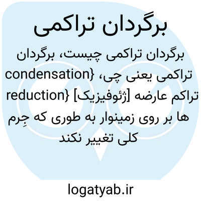 {condensation reduction} [ژئوفیزیک] تراکم عارضه ها بر روی زمینوار به طوری که جِرم کلی تغییر نکند متـ. برگردان تراکمی هِلمرت Helmert's condensation reduction