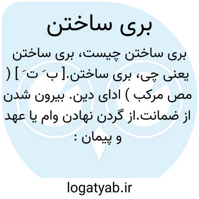 بری ساختن.[ ب َ ت َ ] ( مص مرکب ) ادای دین. بیرون شدن از ضمانت.از گردن نهادن وام یا عهد و پیمان: چنگ درزده ام در بیعت او به وفای عهد و بری ساختن ذمه عقد. ( تاریخ بیهقی چ ادیب ص 315 ). و رجوع به بری شود.