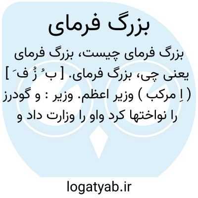 بزرگ فرمای. [ ب ُ زُ ف َ ] ( اِ مرکب ) وزیر اعظم. وزیر: و گودرز را نواختها کرد واو را وزارت داد و در آن عهد [ عهد کیخسرو ] وزیر را بزرگ فرمای گفتندی. ( فارسنامه ابن البلخی ص 46 ). و رجوع به مجله یادگار سال 3 شماره 6 و 7 ص 102 شود.