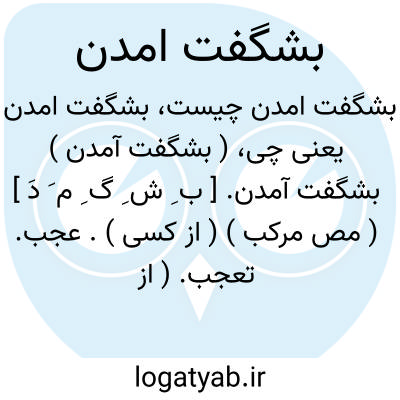 ( بشگفت آمدن ) بشگفت آمدن. [ ب ِ ش ِ گ ِ م َ دَ ] ( مص مرکب ) ( از کسی ). عجب. تعجب. ( از چیزی ). استعجاب. ( منتهی الارب ). و رجوع به شگفت شود.