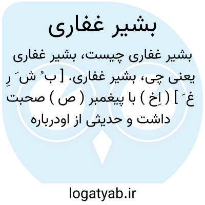 بشیر غفاری. [ ب ُ ش َ رِ غ َ ] ( اِخ ) با پیغمبر ( ص ) صحبت داشت و حدیثی از اودرباره روز پنجاه هزار سال آورده اند. رجوع به الاصابة ج 1 ص 166 و الاستیعاب و قاموس الاعلام ترکی ج 2 شود.