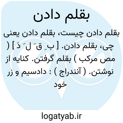 بقلم دادن. [ ب ِ ق َ ل َ دَ ] ( مص مرکب ) بقلم گرفتن. کنایه از نوشتن. ( آنندراج ):
