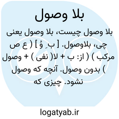 بلاوصول. [ ب ِ وُ ] ( ع ص مرکب ) ( از: ب + لا( نفی ) + وصول ) بدون وصول. آنچه که وصول نشود. چیزی که دریافت نگردد. ( فرهنگ فارسی معین ).