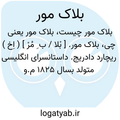 بلاک مور. [ بْلا / ب ِ مُرْ ] ( اِخ ) ریچارد دادریج. داستانسرای انگلیسی متولد بسال 1825 م.و متوفی بسال 1900 م. وی در سن بیست وسه سالگی به نویسندگی پرداخت و پس از مختصر تلاشی درسال 1864م. به داستانسرایی مشغول شد و در 1869م. با انتشار داستان «لورنادون » شهرتی بسزا یافت. ( از فرهنگ فارسی معین ).