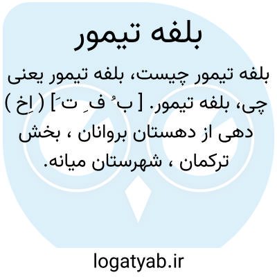 بلفه تیمور. [ ب ُ ف ِ ت َ] ( اِخ ) دهی از دهستان بروانان، بخش ترکمان، شهرستان میانه. سکنه آن 848 تن. آب آن از چشمه و محصول آن غلات و حبوب است. ( از فرهنگ جغرافیایی ایران ج 4 ).