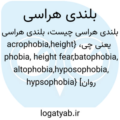 {acrophobia,height phobia, height fear,batophobia, altophobia,hyposophobia, hypsophobia} [روان شناسی] ترس شدید از مکان های مرتفع
