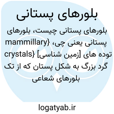 {mammillary crystals} [زمین شناسی] توده های گرد بزرگ به شکل پستان که از تک بلورهای شعاعی ساخته شده اند