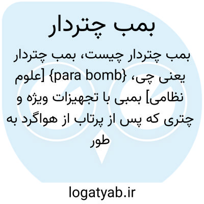 {para bomb} [علوم نظامی] بمبی با تجهیزات ویژه و چتری که پس از پرتاب از هواگرد به طور خودکار باز می شود