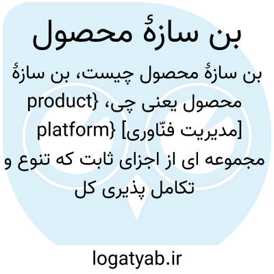{product platform} [مدیریت فنّاوری] مجموعه ای از اجزای ثابت که تنوع و تکامل پذیری کل سامانه را با محدودسازی وابستگی میان دیگر اجزا ممکن می کند
