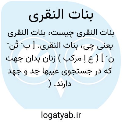لغت نامه دهخدا بنات النقری. [ ب َ تُن ْ ن َ ] ( ع اِ مرکب ) زنان بدان جهت که در جستجوی عیبها جد و جهد دارند. ( از المرصع ).