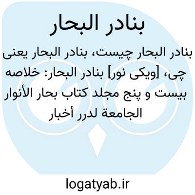 [ویکی فقه] بنادر البحار (کتاب). «بنادر البحار» خلاصه جلد اول از مجلدات کتاب ارزشمند بحار الانوار علامه مجلسی است که توسط مرحوم علی نقی فیض الاسلام به نگارش درآمده و ترجمه و شرح آنها داخل پرانتز نیز توسط خود ایشان صورت گرفته است.