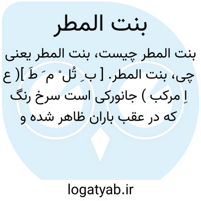 بنت المطر. [ ب ِ تُل ْ م َ طَ ]( ع اِ مرکب ) جانورکی است سرخ رنگ که در عقب باران ظاهر شده و بعد از خشکیدن زمین میمیرد. ( از المرصع ).