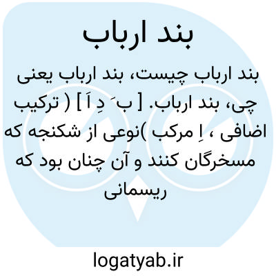 بند ارباب. [ ب َ دِ اَ ] ( ترکیب اضافی، اِ مرکب )نوعی از شکنجه که مسخرگان کنند و آن چنان بود که ریسمانی بر هر دو بند پای کسی بسته سر ریسمان را از جای بلند فرومی هلند، بعد از آنکه از شاخ یا چوبی گذرانیده باشند، همان سر ریسمان را بدست این شخص میدهند. این مرد معلق در میان آسمان و زمین اگر سر ریسمان رارها کند، سرش بر زمین خورد و اگر در دست نگاه دارد،از نگه داشتن آن عاجز و بی تاب می شود. به این طریق مضحکه بر پا میکنند. ( آنندراج ) ( فرهنگ فارسی معین ).