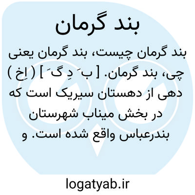 بند گرمان. [ ب َ دِ گ َ ] ( اِخ ) دهی از دهستان سیریک است که در بخش میناب شهرستان بندرعباس واقع شده است. و 200 تن سکنه دارد. ( از فرهنگ جغرافیائی ایران ج 8 ).